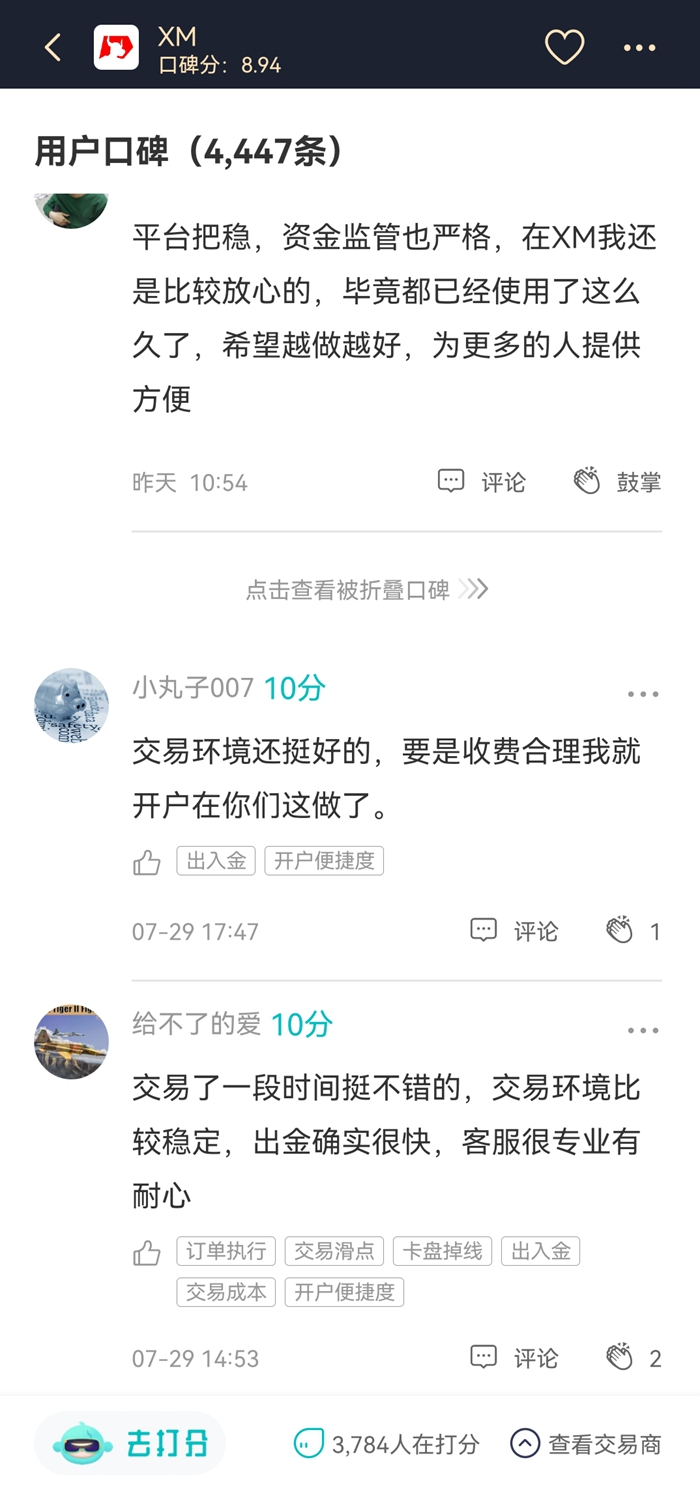 XM是一个老牌交易商了,在国内拥有坚定的用户基础。在天网查,XM目前有4447条口碑,非常难得的是,口碑这么多,口碑分居然还有8.94这么高。