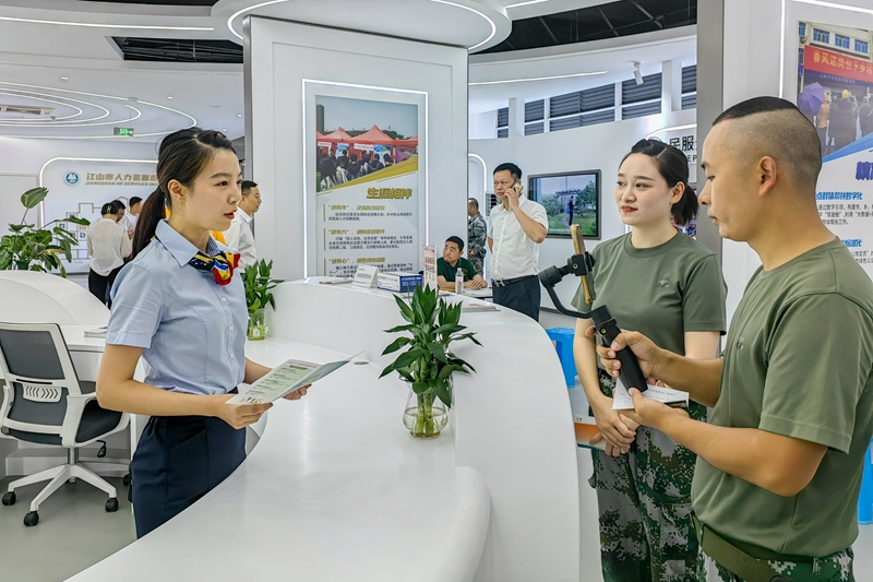 为庆祝中国人民解放军建军95周年,浙江省衢州江山市举办首届“共富杯”退役军人创业创新成果展。图为邮储银行衢州江山市支行工作人员通过退役军人直播平台,介绍该行针对退役军人的金融优惠政策。 文章导航 山西运城,“一对一”入企送金融政策 引才引智 祁东县开展暑期大学生社会实践第二季活动