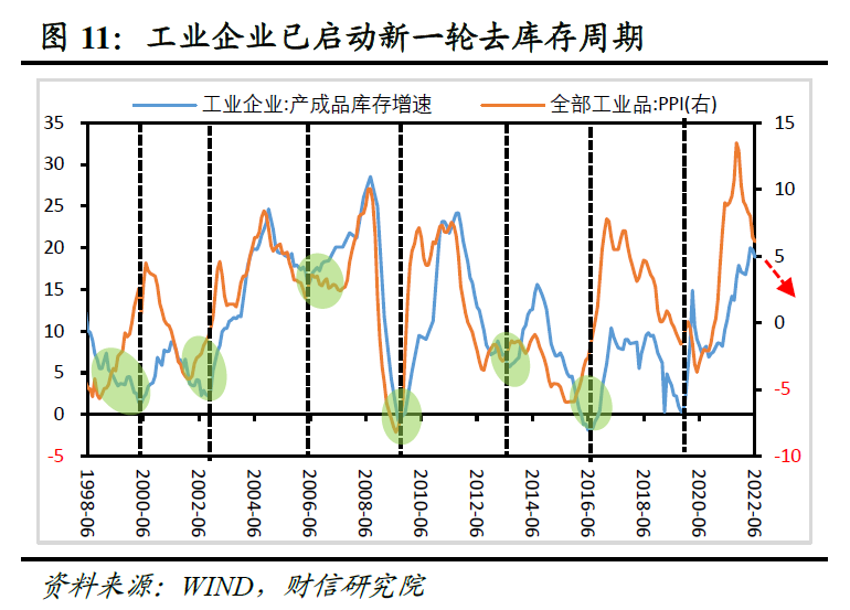 三、预计下半年工业利润改善力度或有限,不排除单月增速再度回落。一是随着企业复工复产有序推进,加上助企纾困等逆周期政策持续显效,短期内工业企业盈利有望继续填坑修复。二是国内消费恢复疲弱,加上房地产市场投资、销售仍处在深度负增长区间,将制约工业生产回升高度,不利于利润大幅改善。三是随着海外需求明显放缓,加上未来工业品出厂价格(PPI)翘尾因素下降,预计PPI对工业利润的支撑将继续减弱。四是无论从价格指标还是上一轮补库存时长看,工业企业大概率已启动新一轮去库存周期,将对工业利润形成拖累。