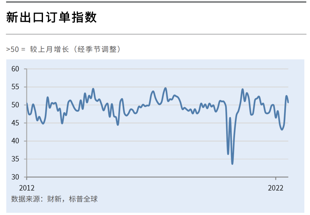 分类数据显示,消费品和投资品新订单增加,但中间品类新订单减少。外需相对稳定,7月新出口订单指数延续了6月的扩张趋势,但幅度略小。