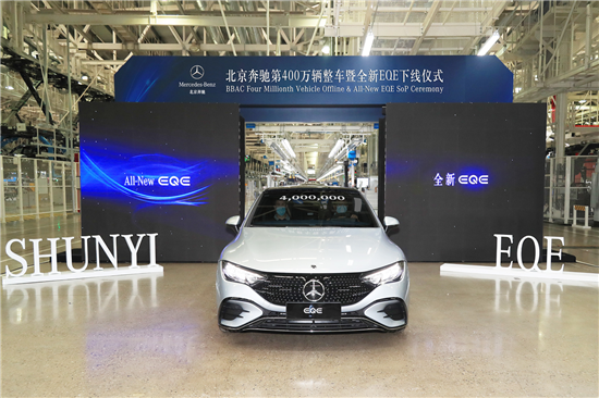 全新EQE荣载“第400万辆国产梅赛德斯-奔驰”于北京奔驰顺义工厂下线