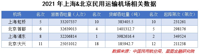 机场建设方面,京沪两座城市可谓势均力敌,上海拥有浦东国际机场(4F级)和虹桥国际机场(4E级),北京则拥有首都国际机场和大兴国际机场(均为4F级),累计开通国内外航线数量均居于全国前列。而在旅客吞吐量方面,明显是首都国际机场更占优势。数据显示,2019年首都国际机场旅客吞吐量突破1亿人次,居全国第一、全球第二;同期的浦东国际机场旅客吞吐量则为7615.34万人次,虹桥国际机场为4564万人次,二者分列我国第2、8位。
