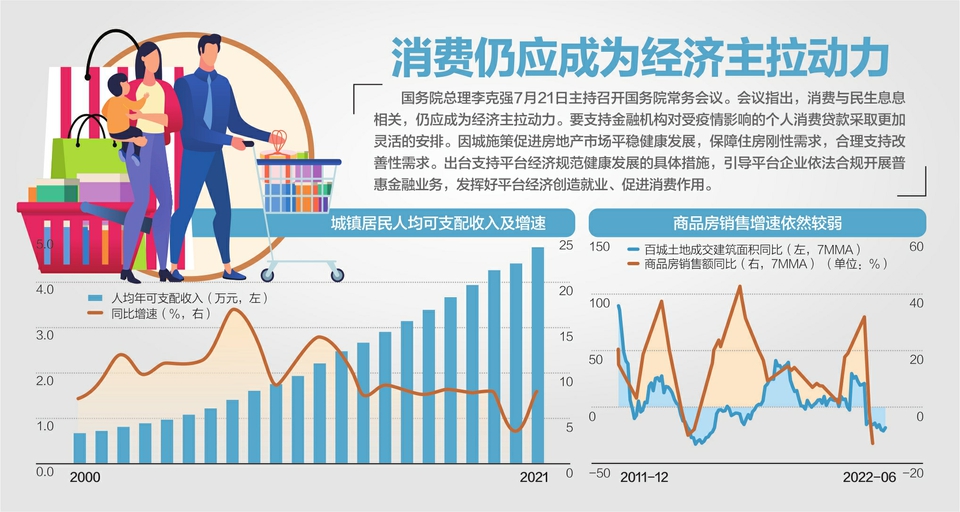 此次会议还指出,消费与民生息息相关,仍应成为经济主拉动力。要支持金融机构对受疫情影响的个人消费贷款采取更加灵活的安排。因城施策促进房地产市场平稳健康发展,保障住房刚性需求,合理支持改善性需求。出台支持平台经济规范健康发展的具体措施,引导平台企业依法合规开展普惠金融业务,发挥好平台经济创造就业、促进消费作用。加大金融对进出口的支持,积极为企业提供汇率避险等服务。