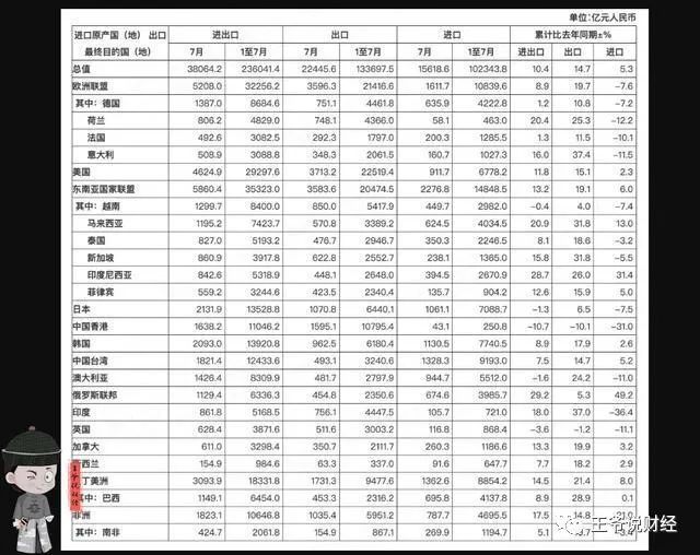 王爷说财经讯:周日(7 日),中国海关总署公布最新的7 月外贸数据。