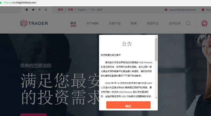 首先对于来自世界各地的投资者对HDG Markets的信任与支持,我们表示由衷的感谢。由于近期一部分资金来源存疑客户的资金转入与提取,导致我们目前的业务在监管的要求下不得不被迫暂停。