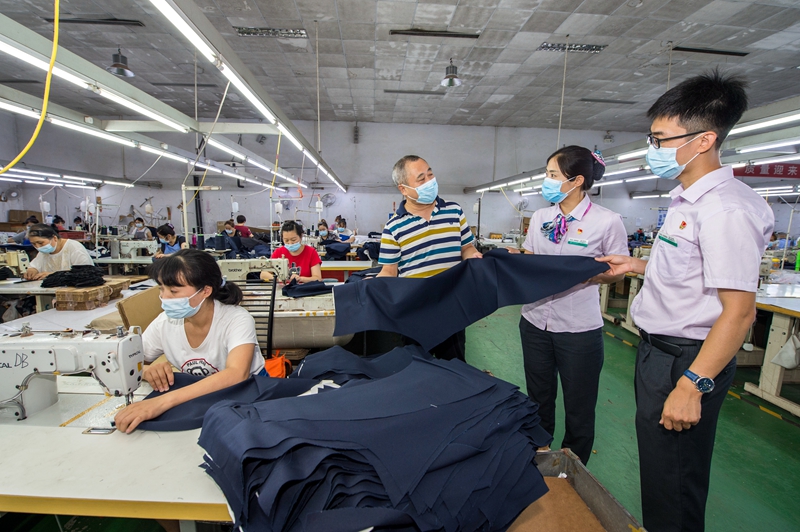 农行河北廊坊金光道支行聚焦“助企纾困”全面优化金融服务,主动对接各类市场主体,倾斜信贷资源支持受疫情影响较大的中小微企业,打通线上线下办贷渠道,不断提升信贷资金可得性。今年以来,该行累计投放小微贷款349笔,金额2.7亿元。图为该行客户经理在廊坊市泉宏达纺织工业有限公司进行贷后调查。