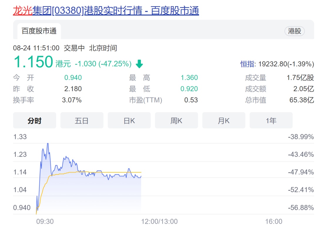 龙光集团复牌暴跌