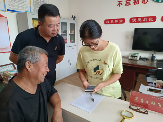 在武强县东孙庄镇耿庄村综合服务站,村“两委”班子成员帮助村民下载安装“国家反诈中心APP”,宣传防诈骗知识