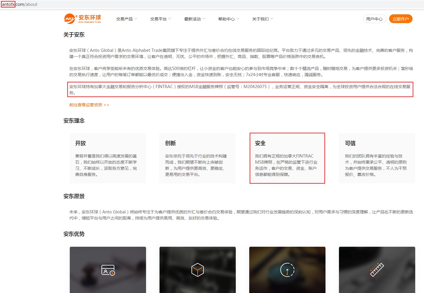 经常关注外汇相关媒体的汇友一定知道,MSB仅为加拿大货币服务注册号,而FINTRAC根本不监管金融衍生品。所以,自称“安全”的安东环球其实是一个不受任何监管的平台,根本就不安全。