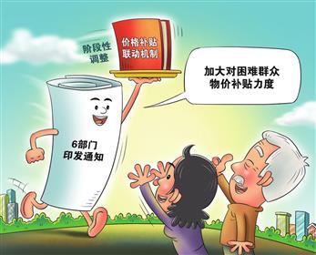 新华社北京9月1日电 记者1日了解到,国家发展改革委等6部门近日印发通知,阶段性调整社会救助和保障标准与物价上涨挂钩联动机制,加大对困难群众物价补贴力度。