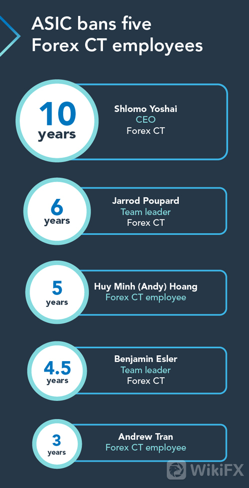 Forex CT首席执行官、责任经理和唯一董事Shlomo Yoshai已被禁令十年。ASIC认为,Yoshai先生缺乏对合规性的理解或考虑是非常严重的,因此有理由做出如此长的禁令期,特别是考虑到他是监督Forex CT运营的人。