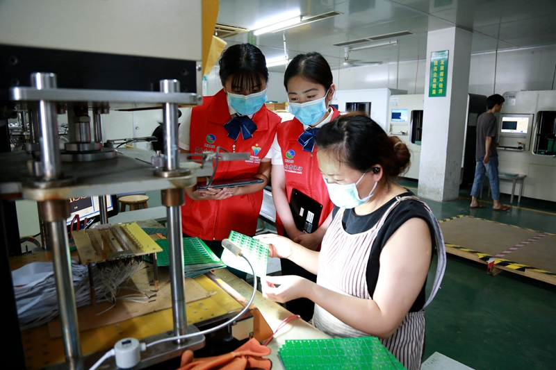 今年一季度,浙江凯捷利电子有限公司遇到流动资金紧缺,开化农商银行及时为其发放贷款1400万元,为企业纾困,助力企业顺利复工复产。截至8月中旬,凯捷利电子销售收入1500多万元,比去年同期增长15%。图为该行客户经理在凯捷利电子做贷后管理。 本报记者 刘志良 通讯员 徐盛 摄