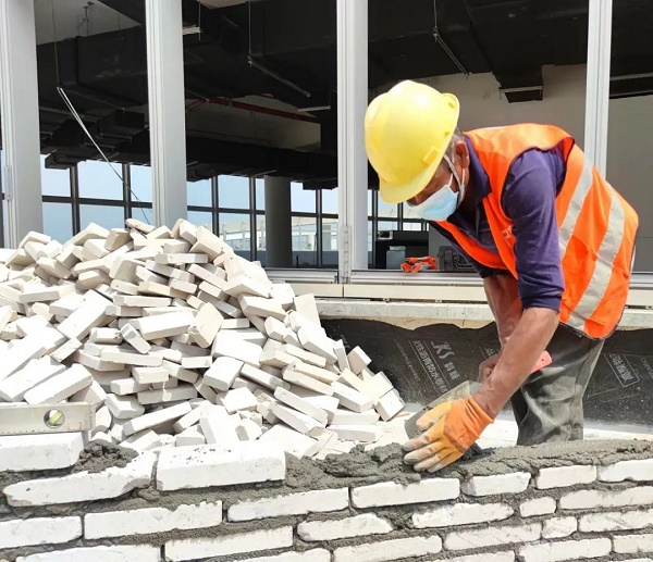 在陵水黎安国际教育创新试验区图书馆项目施工区,工人们干劲十足,在各自岗位上有序作业,在做好疫情防控工作的同时,安全、高效推进项目建设。(陈建峰 杜栋梁 吴才用)