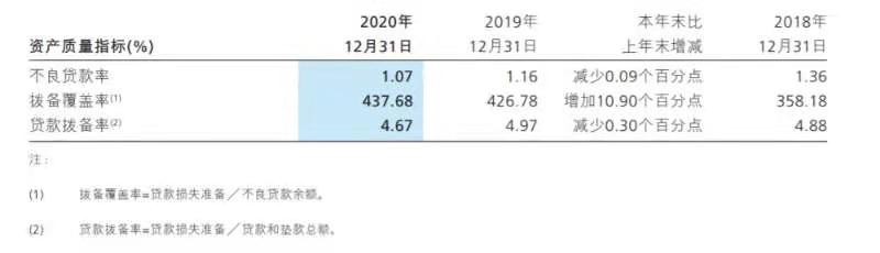 招商银行资产质量指标。来源:招商银行年报