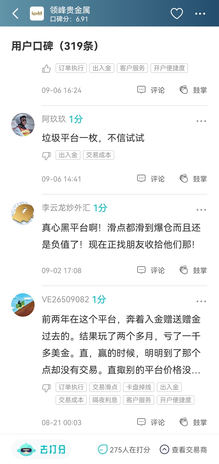那协会会约束行员的行为吗?从天网查其汇友口碑区可以看到:“入金一晚上不到账,也不退款”,“滑点滑到爆仓而且还是负值”……几乎被1分评论刷屏,可见平台行为是多么的"无拘无束”了。