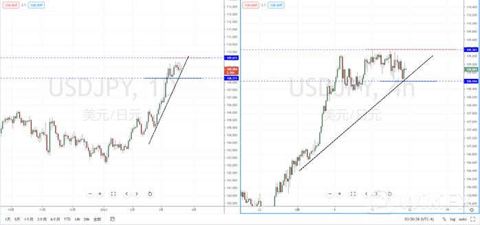 美日天图:目前行情继续在高位区间徘徊,由于前期趋势上行幅度较大,并且从短期趋势的表现,则将进入横盘调整节奏。下方虽然有上升趋势线的支撑与水平支撑带在108.271附近支撑。但从日内4小时级别,仍然需要等待趋势充分调整释放前期动能之后的表现,由于上方空间幅度有限不宜追多行情。