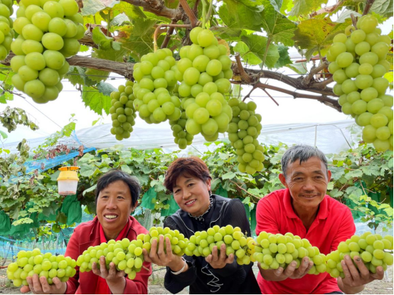 9月20日,永城市侯岭街道任湖村葡萄园里一串串“水晶”葡萄挂满枝头,果农在忙着采摘葡萄。孙海峰 摄