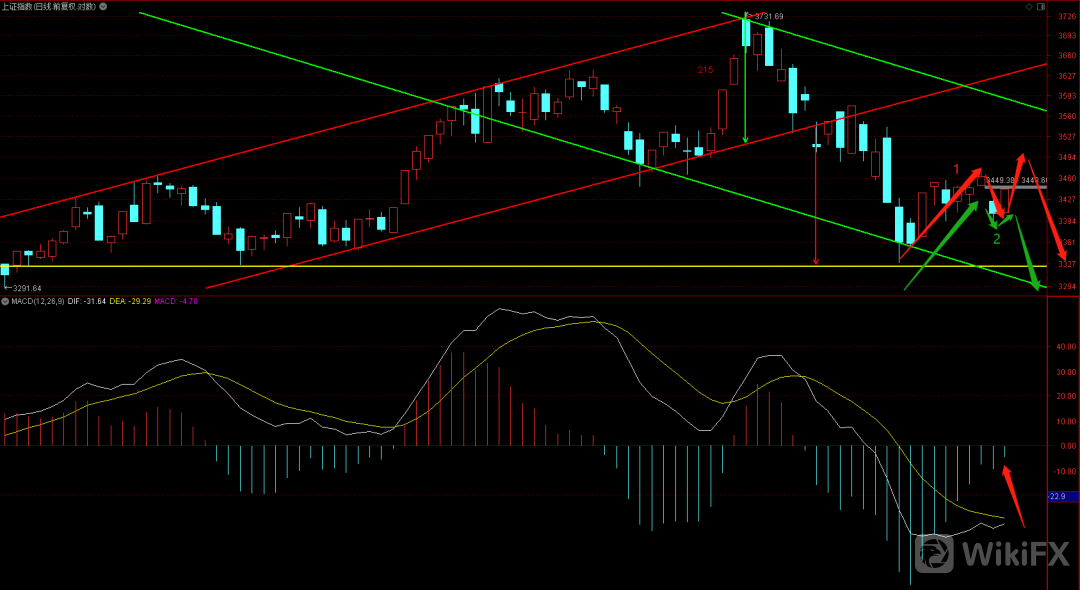 大盘在出现五分钟的连续底背弛后出现反弹走势,短期在跳空缺口附近遇到压制,但由于目前五分钟结构再次走弱且出现顶背驰结构短期可能出现再次的调整,由于日线顶分型的出现短期如果有继续向上的话也大概率只是一个扩张走势,后续大概率还会再次回落去探前期低点支撑。关注上方3465压制与下方3391支撑。以日线跌破亦或者突破为前提去做方向抉择。