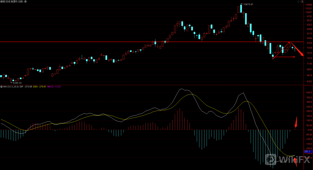 酿酒板块出现日线三卖结构,短期大概率会再次回落,但由于macd刚刚翻红短期更大的可能是先做区间震荡后再出现回落走势。关注7549到8120的区间选择。