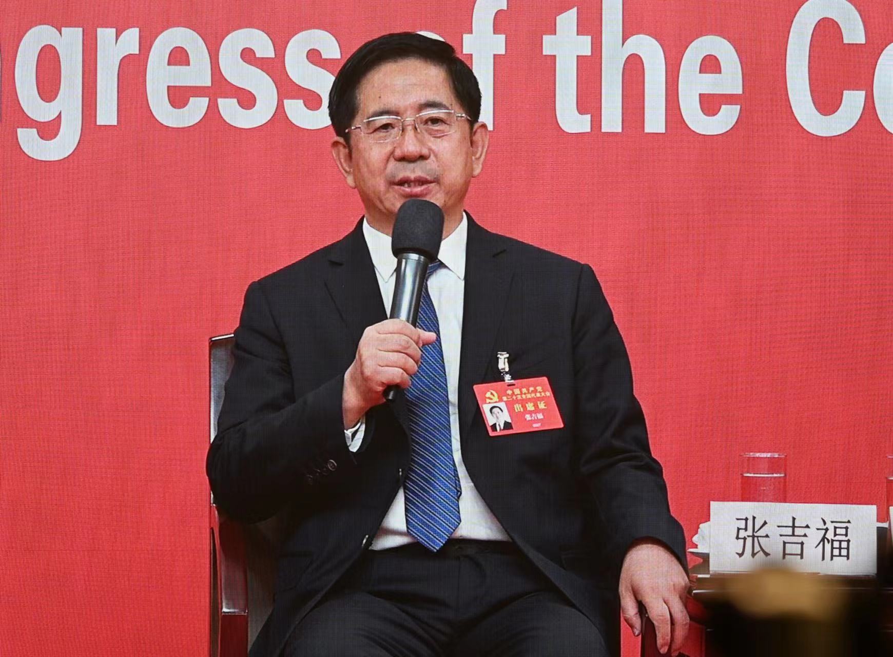 10月18日,中国共产党第二十次全国代表大会新闻中心,山西省委常委、常务副省长张吉福答记者问。 新京报记者 陶冉 摄