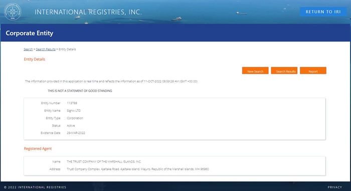 Xprestrade的官网宣称平台由Signix LTD运营,称公司注册于马绍尔群岛,注册号为113788,提供外汇、股票、加密货币、指数、大宗商品等金融衍生品投资交易服务。在马绍尔群岛查询发现,确实有一家Signix LTD的注册公司,但请各位汇友注意:马绍尔群岛根本不监管金融衍生品经纪服务!