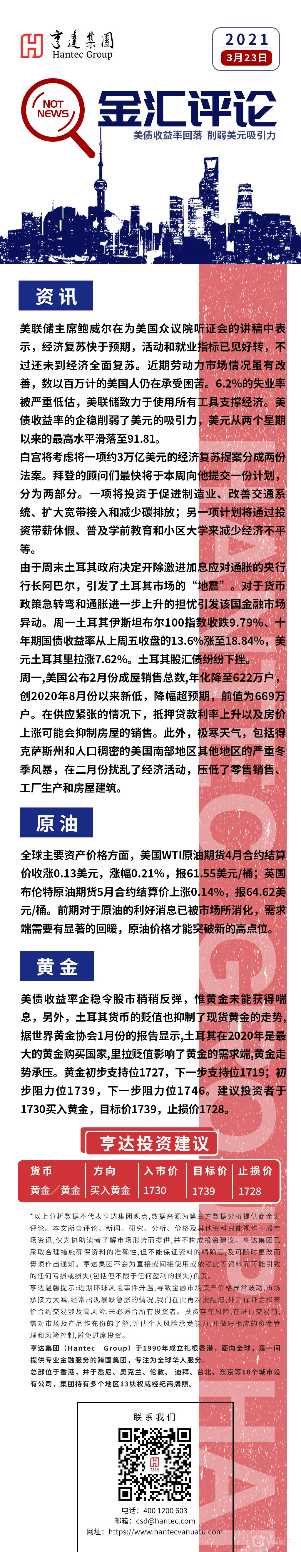 亨达国际金融:亨达金汇评论2021年3月23日