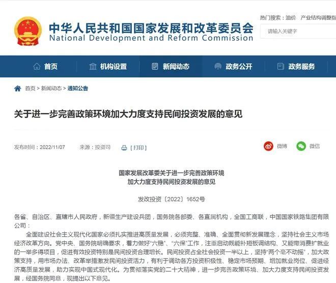 11月7日,国家发改委发布《关于进一步完善政策环境加大力度支持民间投资发展的意见》。意见指出,支持民间投资参与“十四五”规划102项重大工程、国家重大战略等重点建设任务;支持民营企业参与铁路、高速公路、港口码头及相关站场、服务设施建设;鼓励民间投资以城市基础设施等为重点,通过综合开发模式参与重点项目建设。