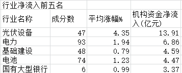 今日机构资金继续从医药行业大幅流出,并流入电力、基础建设与银行等低价大盘股居多的行业,行业前5名如下: