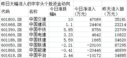 昨天受资金青睐的中字头个股今天出现较大分化,昨天流入第一名中国联通(600050)出现较大抛压,昨天流入8.73亿,今天流出2亿元,跌2.21%,其他如中国能建与中国中冶(601618)也出现大幅流出。