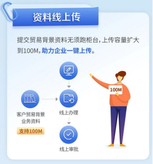 同时,企业提交贸易背景资料无须跑柜台,可借助系统实现线上传输,上传容量更是扩大到100M,真正实现了线上办理到线上审批的全流程服务。