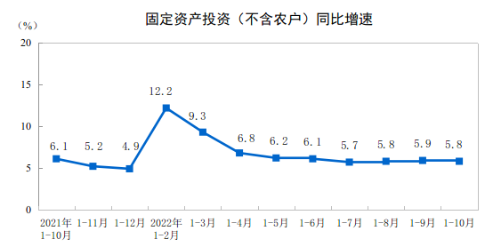 1—10月份,全国固定资产投资(不含农户)471459亿元,同比增长5.8%。其中,民间固定资产投资258413亿元,同比增长1.6%。从环比看,10月份固定资产投资(不含农户)增长0.12%。