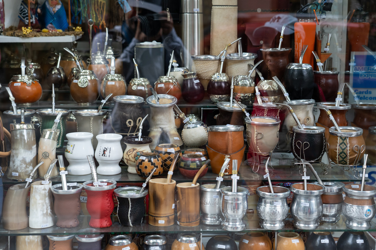 阿根廷当地店铺中售卖的马黛茶葫芦杯(图源:图虫创意)