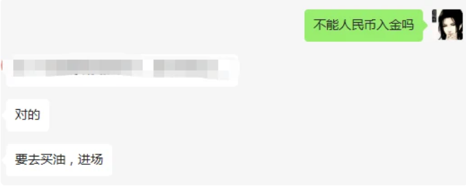 欧亿OYI还不是想入金就入金,其客服称“进场不能用人民币,要去买油”,而且“必须通过领导人”带入才能入金。