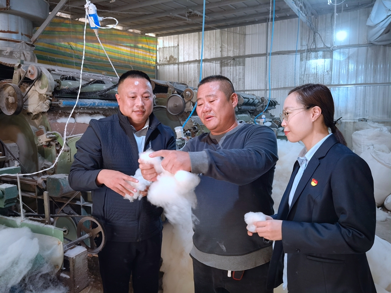今年以来,农行河北省分行围绕特色产业发展规划,积极支持特色鲜明、优势聚集、竞争力强的县域特色产业集群发展。截至今年11月末,该行涉农贷款余额2306.5亿元,为县域产业注入了强大的金融动能。图为该行客户经理在走访邢台清河县羊绒厂,了解企业生产及金融需求情况。