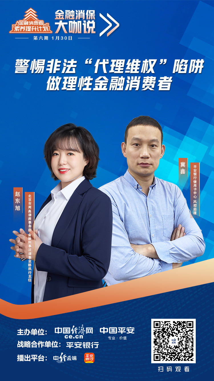中国经济网北京1月30日讯 由中国经济网联合中国平安(601318)推出的《金融消保大咖说》节目于今日播出,本期节目的话题是“警惕非法‘代理维权’陷阱 做理性金融消费者”。