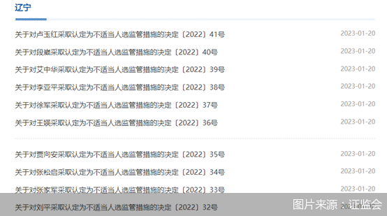 除追究机构责任外,监管也进一步加大对违法违规相关责任人员的处罚。1月20日,针对网信证券此前存在的债券交易业务违规、净资本等风险控制指标不符合规定等多项问题,辽宁证监局更是连发10张罚单,认定网信证券时任董事长、总经理等10人为不适当人员,禁止履行相关职务长达5-15年不等。