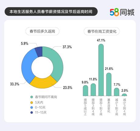 春节是家政和本地服务业的传统旺季,对于在外务工的家政人员而言,是返乡还是坚守?长假结束后,“打工人”返城就业又会有哪些新选择?日前,58同城发布《2023年返城就业调研报告》,聚焦一线城市、新一线城市从业者,从工作情况、薪资、职业技能培训等多维度,对春节前后本地生活服务业的就业趋势进行了深度解析。