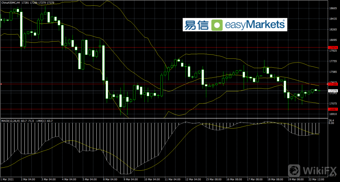 形态看A50指数第一压力就是17380附近,突破则看17660,短线支撑是17000附近。指标看布林线开口横盘,而MACD指标低位徘徊,短线方向不明,所以A50目前不一定能有效突破上方压力。交易策略突破前可以尝试高抛低吸交易,突破后采取追单策略。