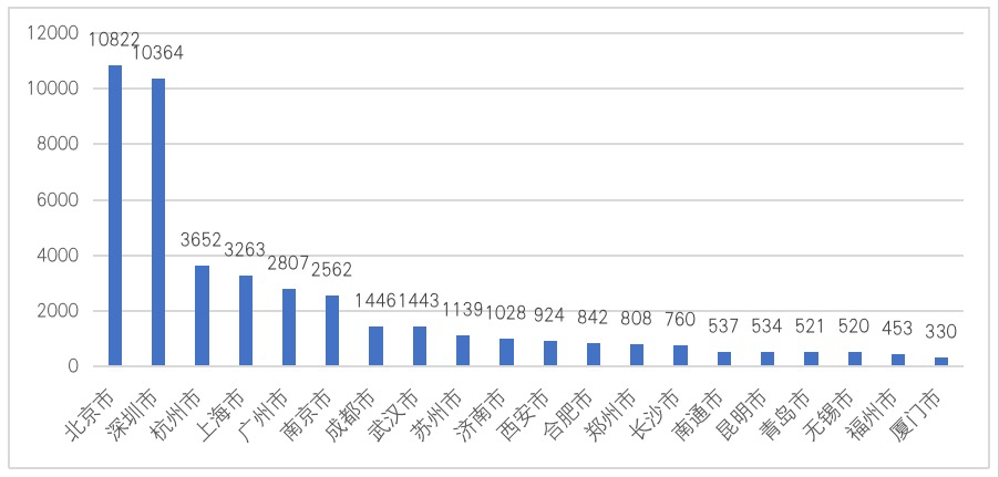 图2 2021年中国城市数字技术数量TOP20