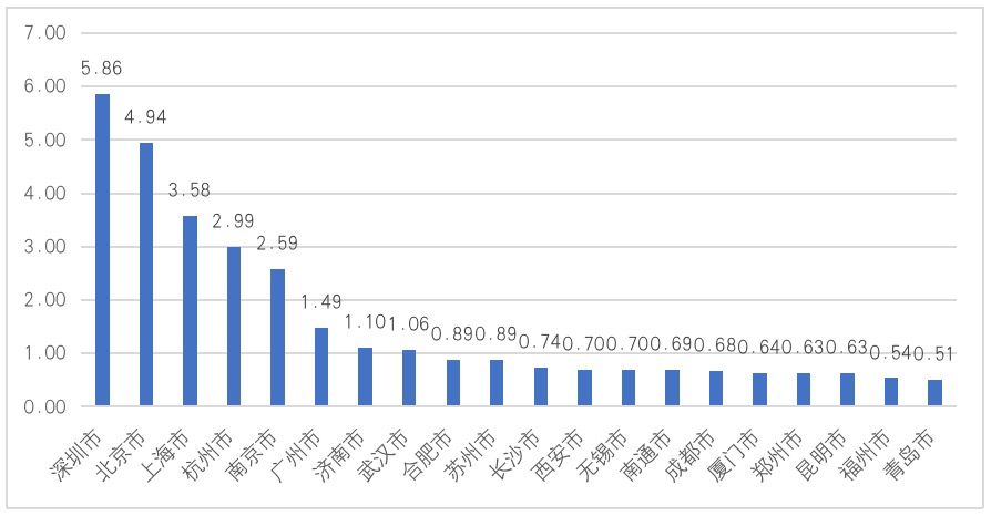 图3 2021年中国城市数字技术密度TOP20