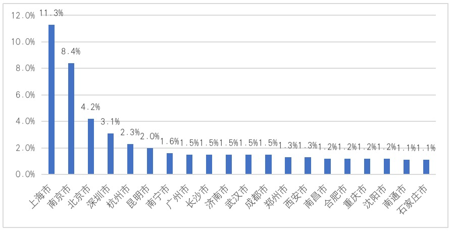 图4 2021年中国城市数字技术占比TOP20