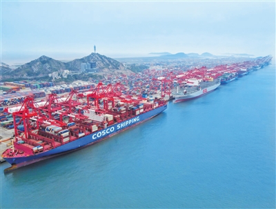 港口也是尺度的放大器。去年7月,全球最大的集装箱货轮“长益”号靠泊在洋山港二期码头,船长399.99米——几乎相当于4个足球场的长度,比目前全世界最大的航空母舰还要长67米,足以承载2.4万个标准集装箱。