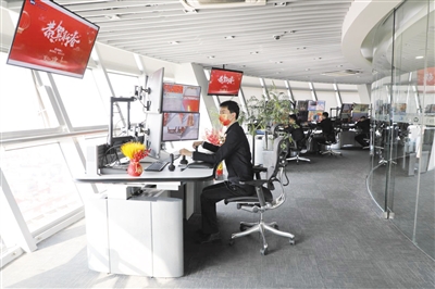 在洋山港四期的一座耸立的高塔上,码头的“大脑”正在高速运转。工作人员每天要乘电梯升到80米左右的高空,来到一个环形中控室。透过巨大的玻璃墙,他们可以俯瞰整个码头。但大部分时候,他们都要紧盯着眼前的数块电脑屏幕,上面有不断移动的方块和不断刷新的数据。通过这个高度集成的自动化系统,他们可以精准地操作每一台桥吊。