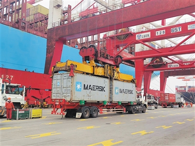马士基航运是全球最大的集装箱运输公司,也是上海港最大的外资航运公司。在马士基相关工作人员看来,中国港口的效率会远远高于美国、新西兰等国家。“去年和前年,船在欧美国家可能需要在锚地等几周才能靠岸,在中国一般只需要1至3天。”