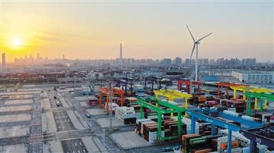 2月21日,天津港(600717)全物联网集装箱码头(无人机照片)。图/新华社