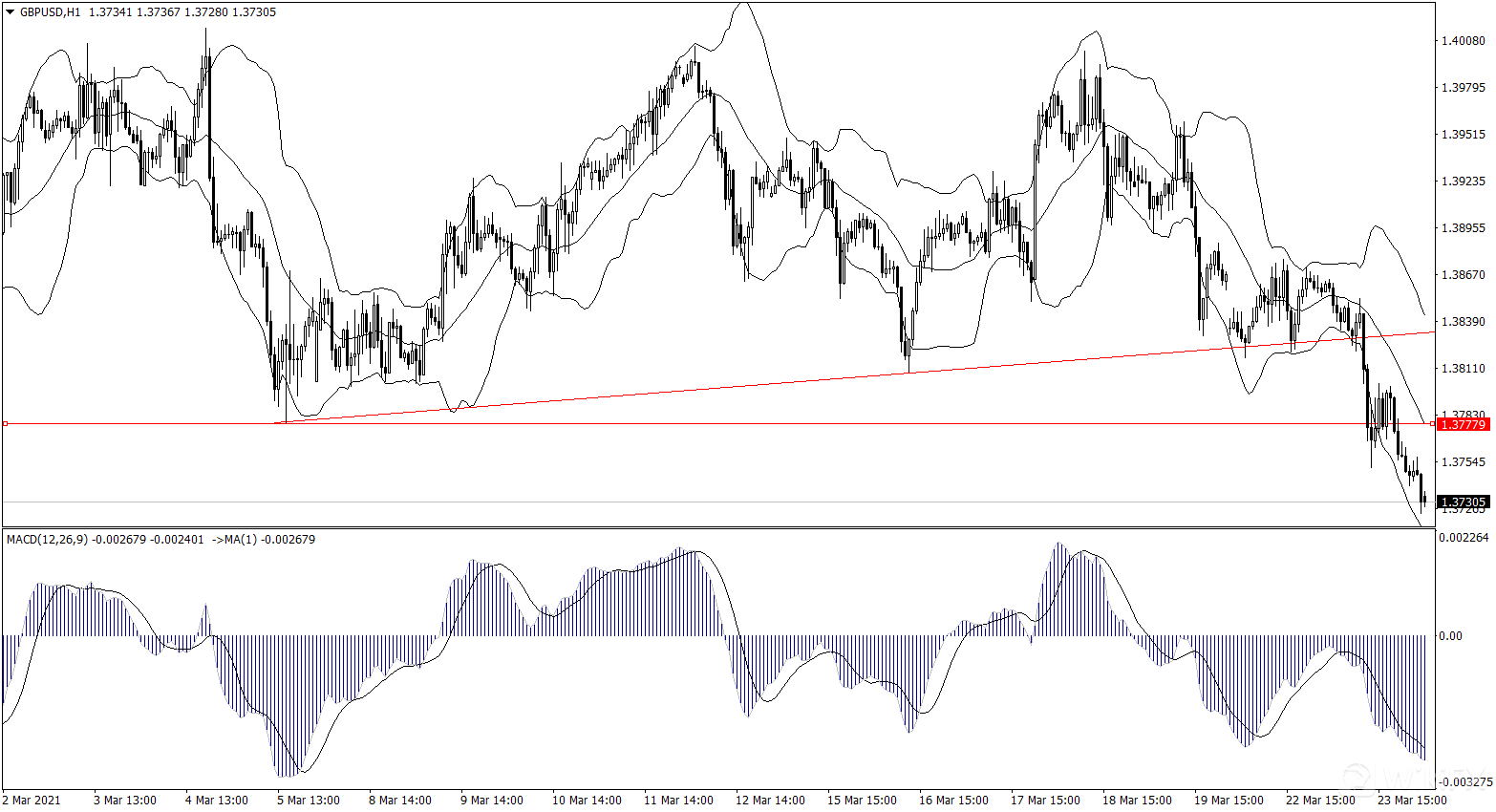 技术上看,欧元形态震荡回落,目前短线测试第一支撑1.183位置,如果破位欧元将加速回落至1.176附近,短线第一压力是1.188附近。指标看布林线开口向下,MACD低位徘徊,欧元形态偏空。交易策略逢高空为主,或者跌破支撑采取追单交易。