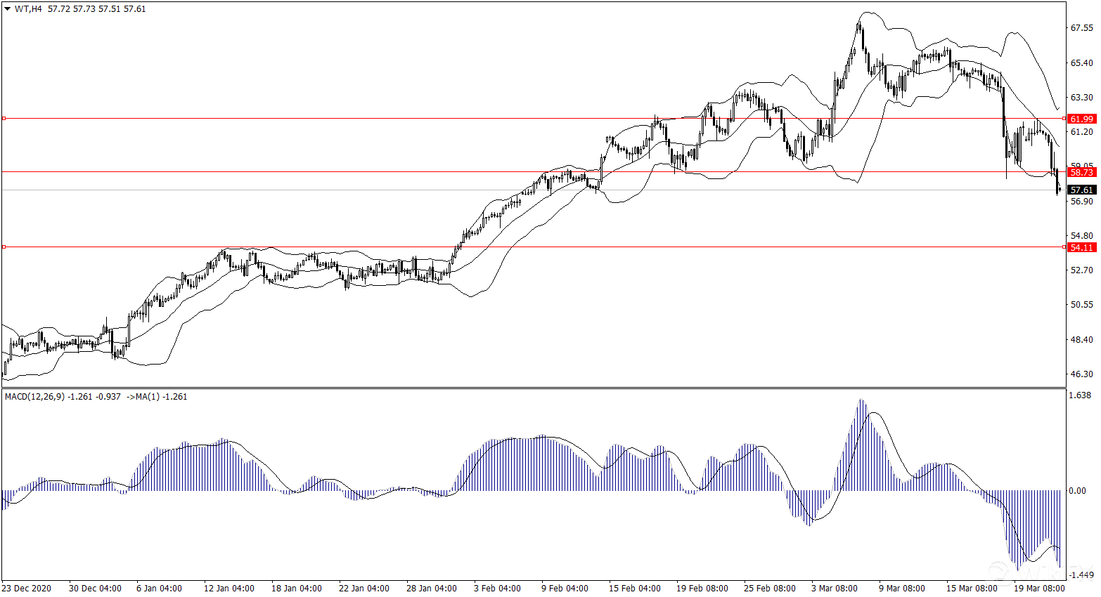 油价暴跌6.35%,因欧洲地区为对抗疫情而重启封城措施,挫伤能源需求预期。另外,API原油库存增加近300万桶,也对油价构成威胁。短线技术面看跌信号较强。