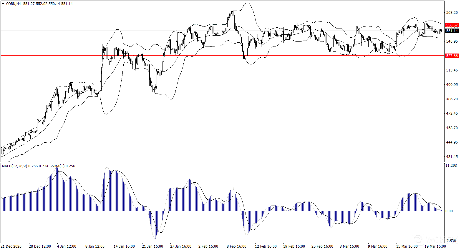 玉米短线在557美元附近反复测试,下方支撑是545美元,527美元。指标看布林线开口横盘,而MACD在0轴位置徘徊,短线方向不明。交易策略,如果是多头思路,那么545美元支撑格外重要破位玉米会加速回落,而空头入场位置是557美元附近,升破则看568美元附近,所以突破前维持震荡交易策略,突破后采取追单策略。