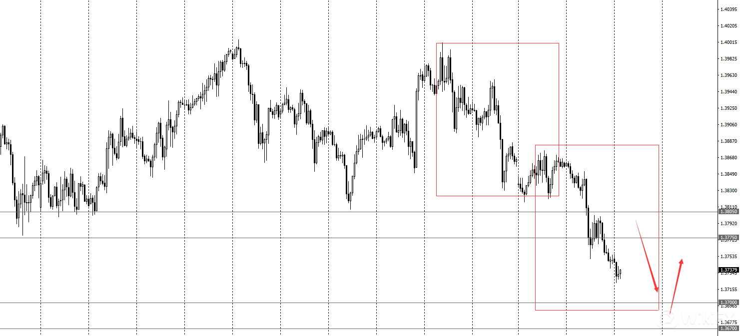 目前高空为主,今日是延续昨日继续低位震荡下行,还是触底反弹后下行需关注:1.3775附近或1.3805附近承压空,博下行日波幅;如在1.3700附近或1.3670附近支撑可试多,博支撑反弹波幅。
