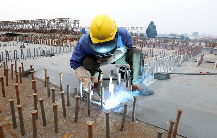 “目前我们的工人主要集中在2座桥的建设现场,现在你所在的位置是丹棱河大桥,跨度230米,是全县最大的公路桥梁。”近日,在丹棱县南环线项目丹棱河工程建设现场可以看到,30余名工人正在紧张实施桥面铺装和护栏安装等工作,场面甚是壮观。在另一座大桥——跨工业大道跨线桥修建现场,跨幅40米的钢结构跨线桥主体已经竣工,工人们正忙着给钢箱梁顶板进行焊接,不久之后桥面的剪力钉将被厚厚的混凝土覆盖。